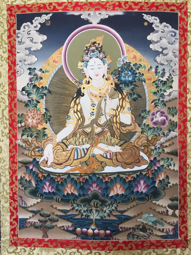 Tuesdays from Nov. 25 will focus on a meditation that involves visualizing White Tara as part of a practice that helps us to imagine our originally pure nature. We have a short written version of this practice on our website here, which includes this image.